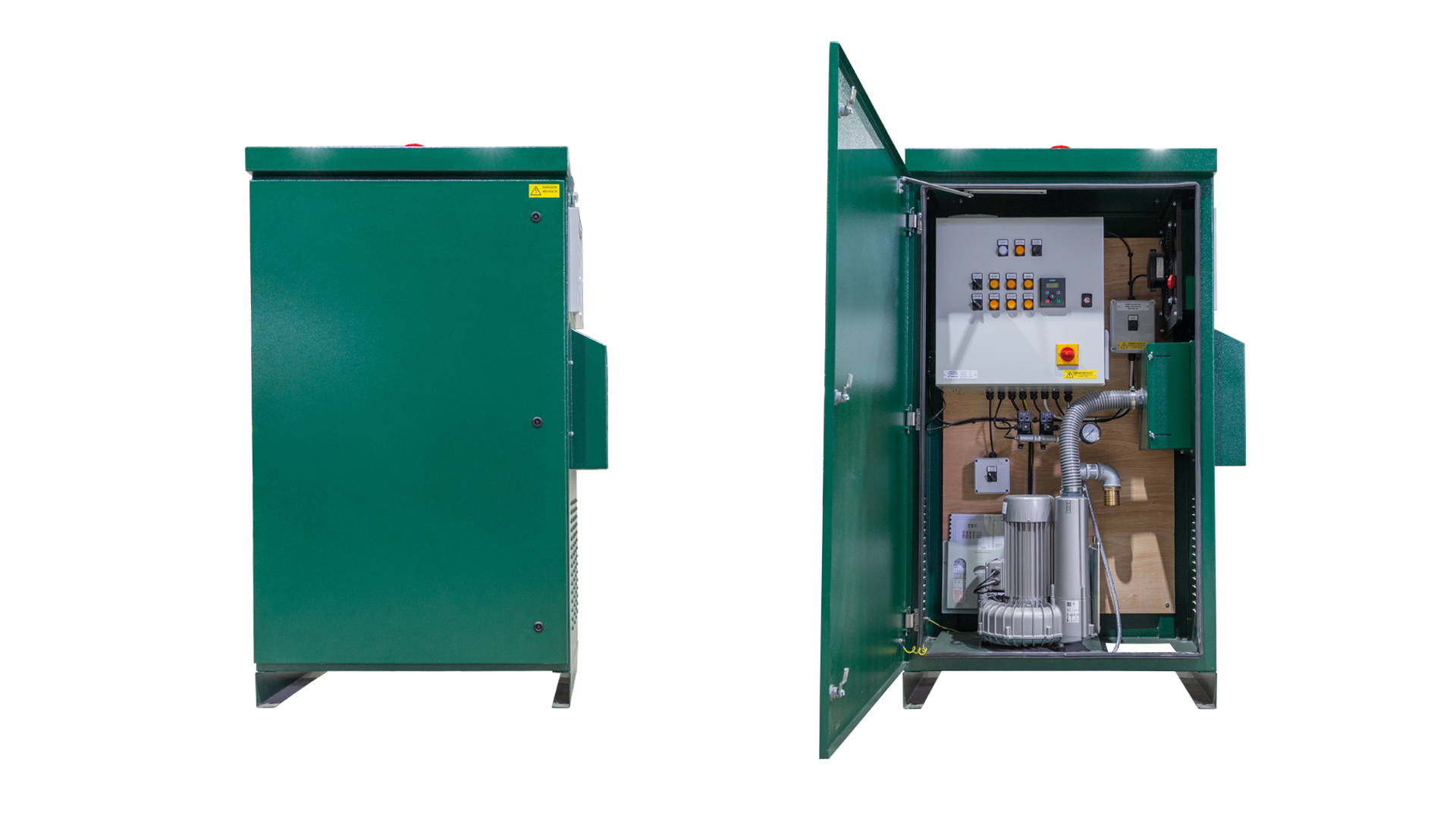All Rewatec SAF plants are supplied with a robust kiosk to house the electronic and mechanical componentry required to operate the system. Innovative features such as temperature and pressure alarms and air filter monitoring are included as standard, with options such as acoustic lining and GSM and/or BMS communication for remote plant monitoring, available upon request.