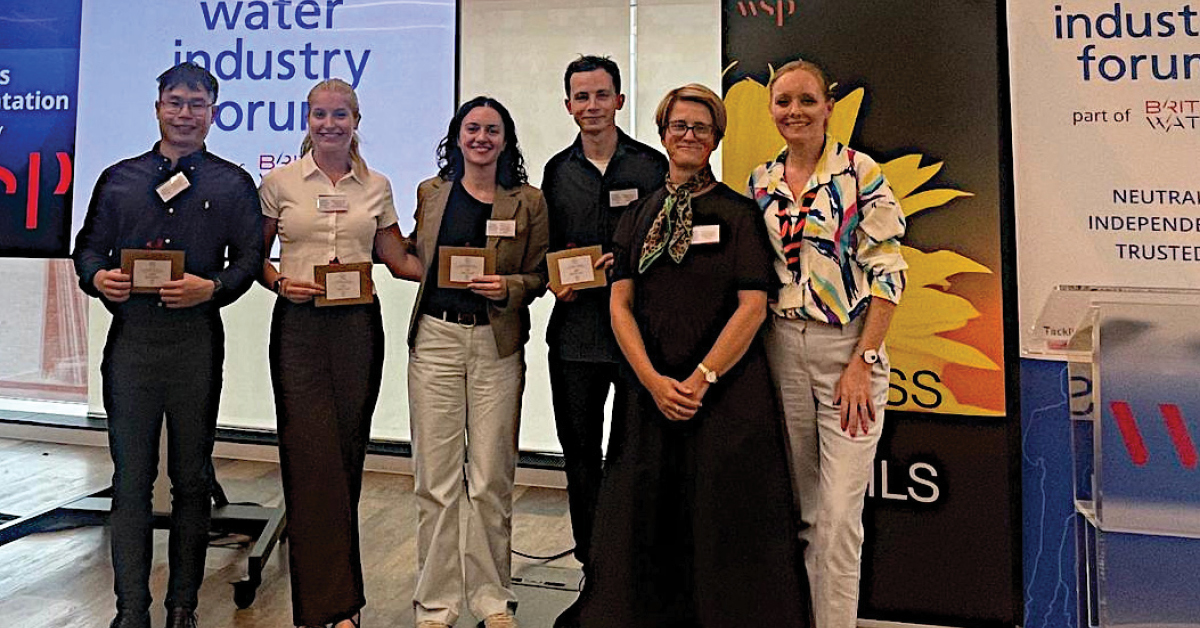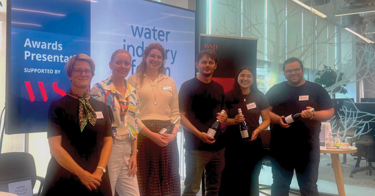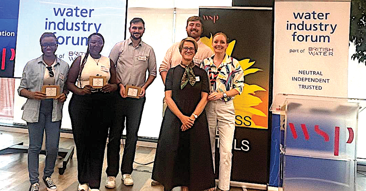 Picture with Anita Payne, WIF and Louise Elliott, WSP are Alice Mucklow, Galliford Try; Josh Dixon, United Utilities; Maryam Haleem, Arup; Ramiz Beig Zali, University of Exeter